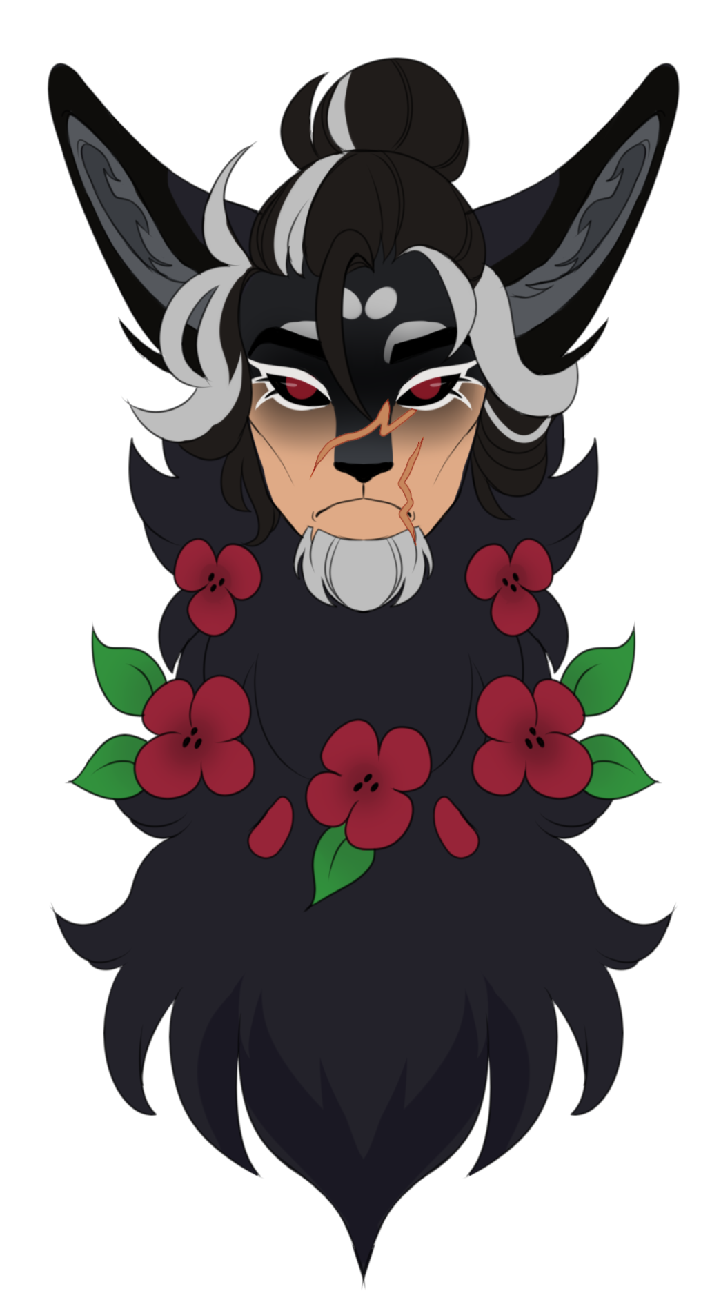 asymmetrical hair and markings are included in price, but complex designs may incur a slight complexity fee. tends to not have a neck but varies by character!